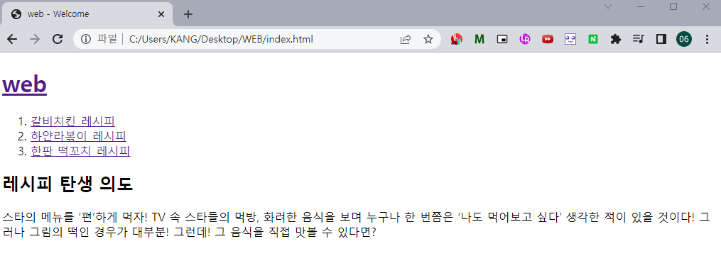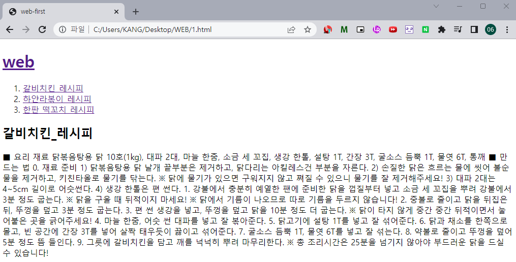 <li><a href = "1.html"> 갈비치킨_레시피 </a></li>