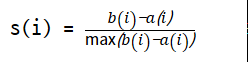 - b(i) : i번째 데이터에서 자신이 속하지 않은 클러스터 중 가장 가까운 타 클러스내의 다른 데이터 포인트들의 평균 거리